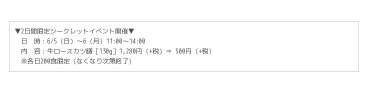 【2日間限定】6/5(日)~6(月)は、話題の牛カツが500円で食べられる行列必至のプレイベントも開催!