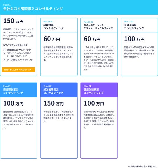 本コンサルティング・サービスは、スーツアップの関連事業として2023年3月より開始しており、中小・中堅企業やスタートアップ(以下「中小企業等」といいます。)の組織力のアップを実現するコンサルティング・サービスです。