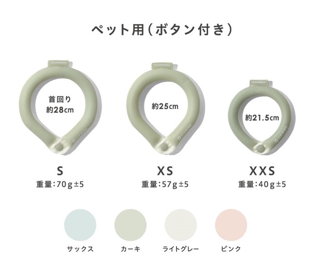 この度、スポーツ中の激しい運動や小さなお子様の装着時、ペット散歩時にアイスリングが外れてしまうといったお悩みの声にお応えし、「ボタン付きICE RING(R)」ペット用・ヒト用を2023年4月28日(金)から発売することとなりました。