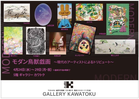 ■パルクアベニュー・カワトク 5階 ギャラリーカワトクにて ■サブカルチャーのルーツとも言われる 鳥獣戯画へのオマージュ作品は、新作描き下ろしも多数登場。見ごたえのある企画は必見です