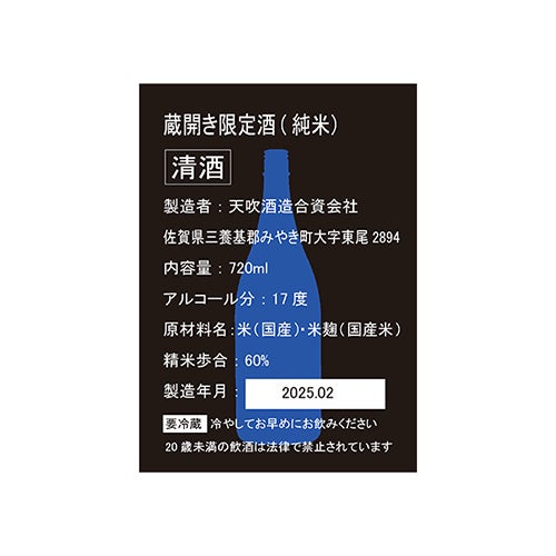天吹 神力 純米 月下美人 2025年蔵開き限定酒●2025年蔵開きに提供された限定酒(非売品)