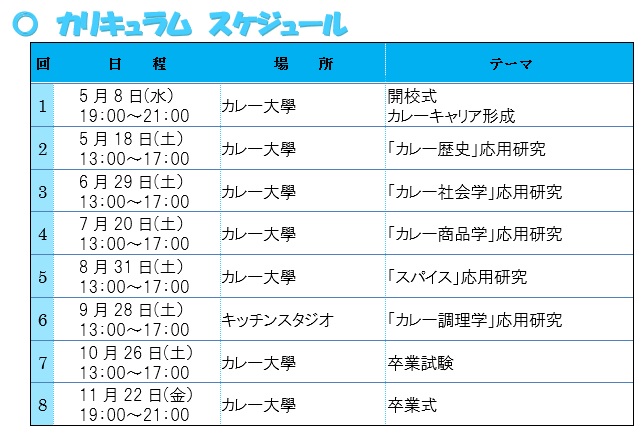 ・カレー大學の主要5科目(歴史・社会学・商品学・調理学・食べ歩き学)を7カ月かけて広く深く徹底的に学びます。