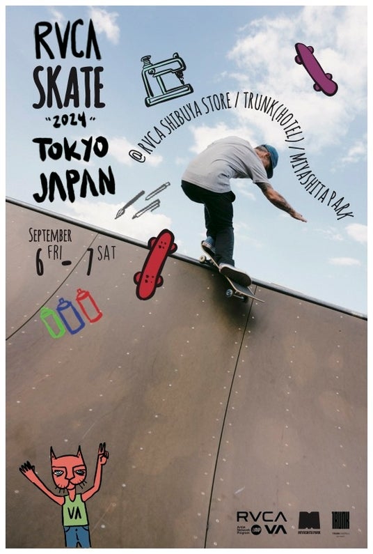 アート、スケートボード、サーフィン、格闘技の4つのルーツを持つ、カリフォルニア発のライフスタイルブランドRVCA(ルーカ)。9月6日(金)、7日(土)の2日間、“Encounter the culture”をテーマに、スケートを中心としたアート、フードを融合させたイベント『RVCA SKATE』が渋谷の3会場で開催される。