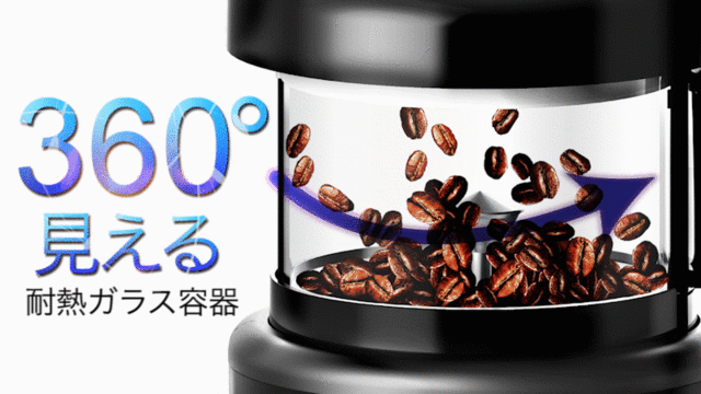 耐熱ガラスの容器を採用している為、焙煎の経過を360°全方位から確認することができます。