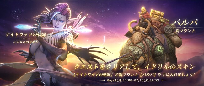 ◆6月24日(月)~7月16日(火)のイベント期間中、クエストをクリアすると、「イドリル」(エピックマークスマン)のスキン「ナイトウッドの妖婦」と、新ヴォイドリフトマウント「バルバ」を無料で獲得できます。
