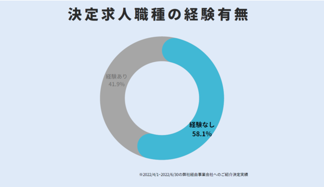 事業会社での採用事例のうち、キャリアチェンジでの採用が約60%を占めています。
