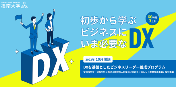 摂南大学(大阪府寝屋川市・枚方市、学長:荻田喜代一)は、文部科学省の「成長分野における即戦力人材輩出に向けたリカレント教育推進事業」の採択を受け、『DXを基盤としたビジネスリーダー養成プログラム』を、2023年10月23日(月)から開講します。