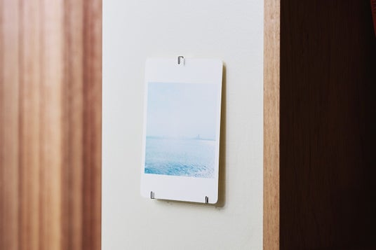 カードやリーフレットなどは下に2つ、上に1つ使用することで穴をあけずに支えられます。大切な思い出も綺麗なまま飾れます。