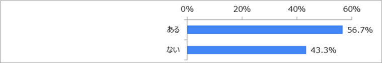 「ある」が56.7%、「ない」が43.3%で、就職活動で生成AIを利用したことがある留学生の方が多い結果となりました。