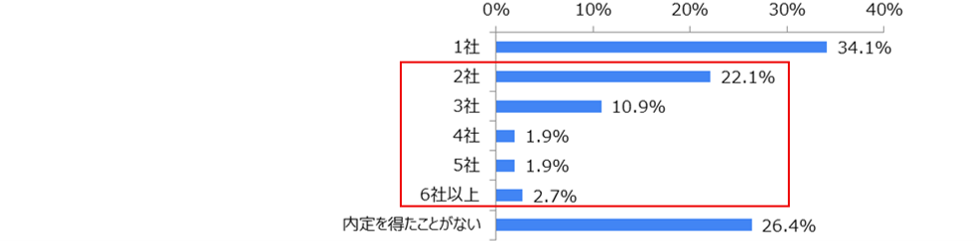 ● 約4割(39.5%)が2社以上の内定を獲得、内定獲得後も3割超(34.2%)は就活を継続