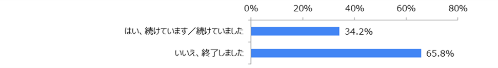 65.8%が「いいえ」と回答した一方で、34.2%が「はい」と回答し、内定獲得後も就職活動を続けている/続けていたことがわかりました。