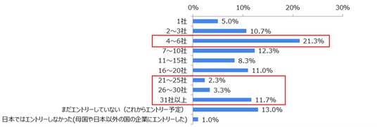 Q7. 日本で新卒の就職活動時、何社にエントリーしましたか? [単一回答]