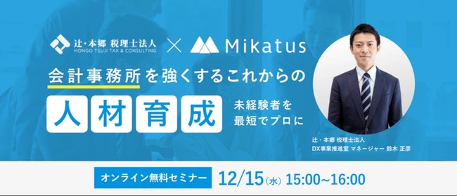 辻・本郷 税理士法人 × Mikatus 共催オンラインセミナー | 会計事務所を強くするこれからの人材育成~未経験者を最短でプロに~