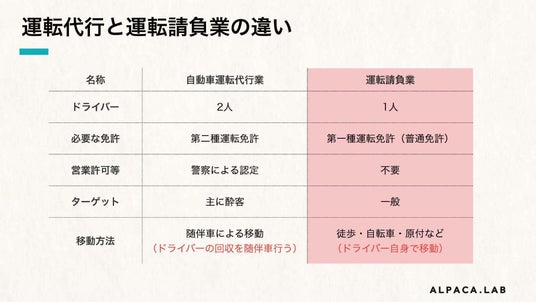 また、2種免許や営業許可が不要なため、開業も比較的容易で、昨今の運転代行不足の課題解決となるものと考えております。