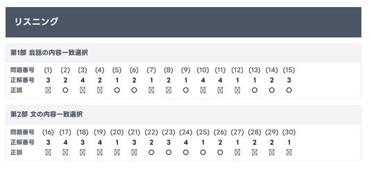 また、Reading/Listeningについては、設問ごとの正誤もPDF上で確認できます。