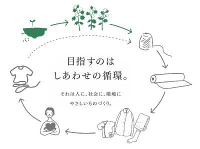 オーガニックコットンの原綿を輸入し、糸・生地・製品までを一貫して、「メイド・イン・ジャパン」にこだわった企画製造販売を行っています。
