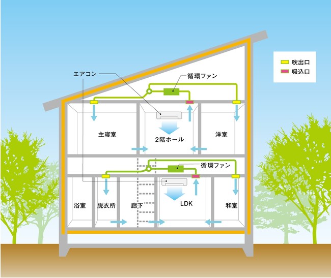 長年研究してきた高気密・高断熱の高性能住宅に空気循環システムを搭載した省エネ住宅