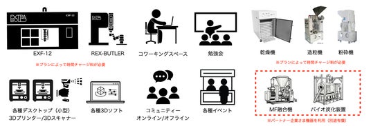- 3Dプリンターなどを利用可能(EXF-12、REX-BUTLER、小型3Dプリンター、3Dスキャナー)※オプションでオペレーション代行(追加有償)もあります