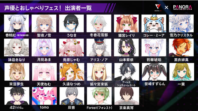 総勢26名のバーチャル配信者が出演。