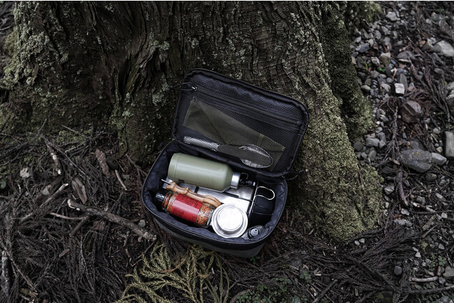 時間をたっぷり使い、美味しい料理を作る、それもソロキャンプです。キッチン&ギアケースはラージメスティンやシングルバーナー、燃料やスパイスなど料理を楽しむための道具をまとめて収納することが出来ます。
