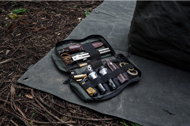 野良ブラスター、野良ばさみがしっかりと収納できます。シースナイフや小型LEDランタンなどソロキャンプに必要なアイテムを収納することができます。