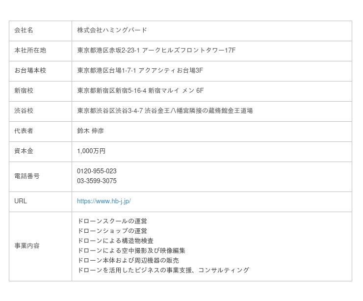 株式会社ハミングバードについて(ドローンスクールお台場・新宿・渋谷)について