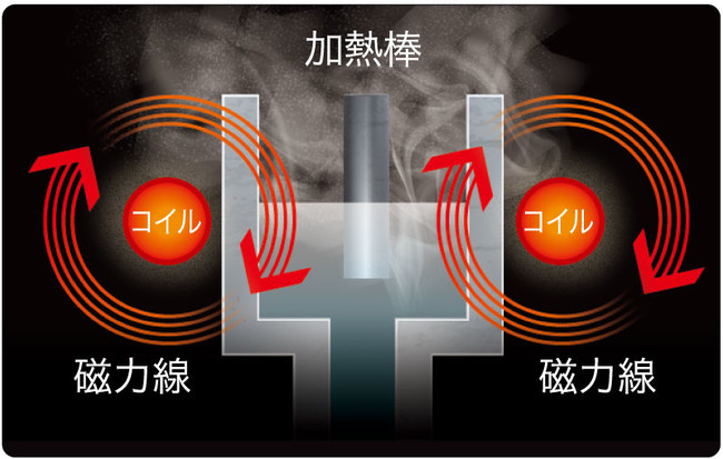 電磁調理器と同じ原理を使っているので熱効率が良く、わずか約30秒で蒸気が沸き上がります。