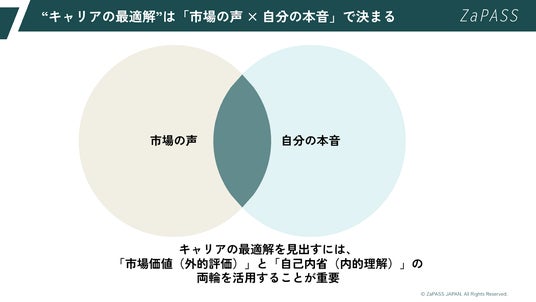 だからこそ今、キャリアの最適解を見出すには、「市場価値(外的評価)」と「自己内省(内的理解)」の両輪を活用することが重要です。