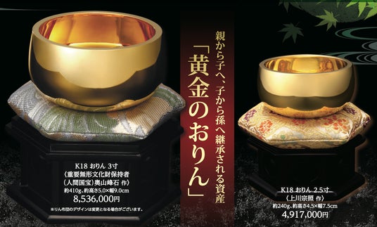 「大黄金展」では、人間国宝が手がけた金工芸品である「黄金のおりん」から定番の大判小判、また暮らしを彩る和洋食器、仏像や開運・縁起物の置物など、ご覧いただくだけでも華やかな気持ちになれる金製品が勢揃いしています。お気軽に会場まで足を運んでいただければと思っております。