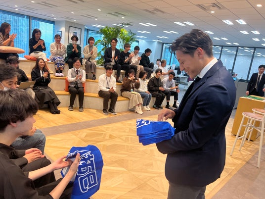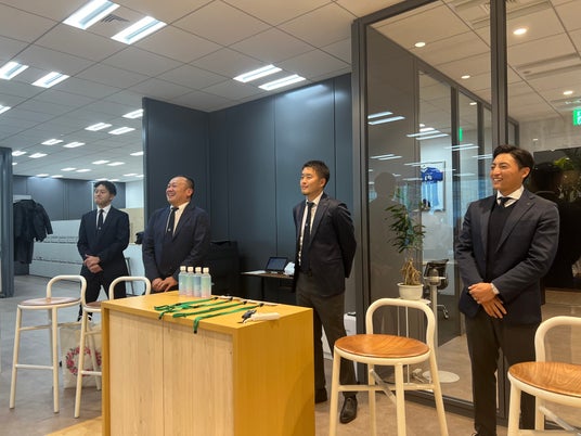 「2年連続プレーオフは引き分けで敗退していて悔しい思いをしました。ただ積み上げていくことが大切だと考えます。今いるメンバーに新しい仲間を上積みできれば優勝できると思っています。来年はこのオフィスでいい報告ができたらいいと思っています」