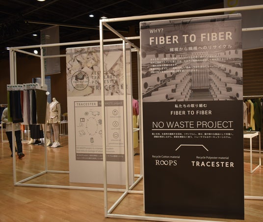 商品を作る際に出る裁断片や古着を回収して繊維に戻し、再び商品として生まれ変わらせる素材循環スキーム「NO WASTE PROJECT」。コットンからコットンに循環させる「ROOPS(ループス)」とポリエステルからポリエステルに循環させる「TRACESTER(トレステル)」の2軸で展開することで、サステナブルの幅を広げます。