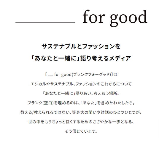 ■サステナブルやファッションの未来を「共に」考えるメディア「__ for good(ブランク フォー グッド)」