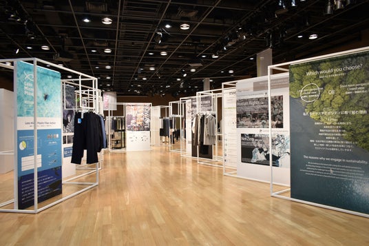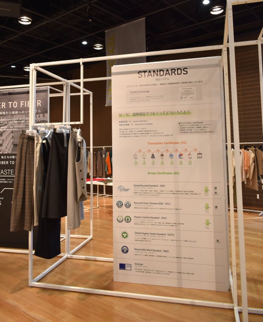 展示会中央のメインブースでは、「私たちがサステナビリティに取り組む理由」と題したパネルを設置し、長期的、かつグローバルな視点からファッションの未来を考えたとき、今、事業を通して課題解決に取り組む必要があるということを来場者に訴えました。当社がこれまで構築してきた多彩なソリューションがお客さまの「困りごと」や「課題」を解決する一助になることを目指します。