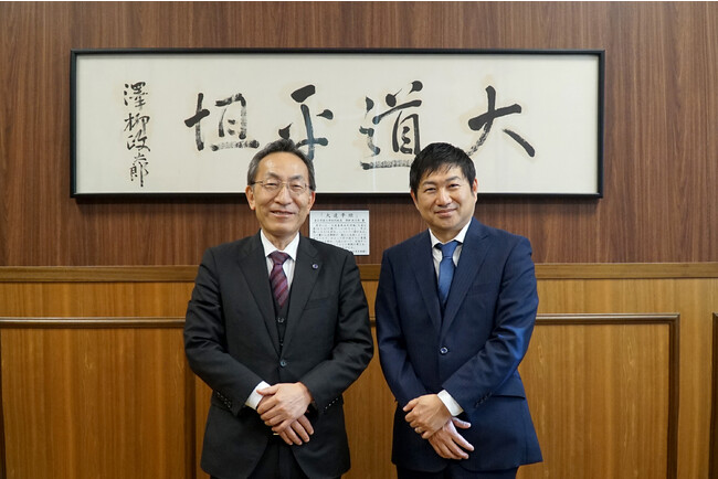 左から:東北大学総長 大野英男、デクセリアルズ株式会社 新家由久