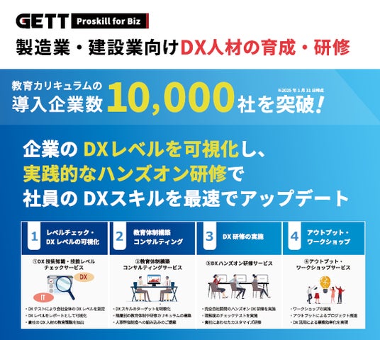DX・ITスキルアップのための講座を提供。実践的な内容で、すぐに業務に活かせるカリキュラムで企業向けのオーダーメイド研修も実施。