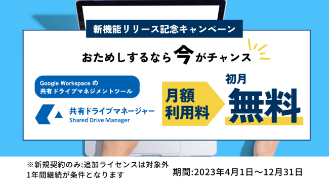 吉積情報株式会社(本社:東京都千代田区、代表取締役社長:秋田晴通、以下、吉積情報)は、共有ドライブの運用を強化できる「共有ドライブマネージャー」のUIを改善して、ダッシュボード化しました。UI改善を記念して、月額利用料が初月無料となるキャンペーンを実施中です。実施期間は、2023年4月1日~12月31日です。