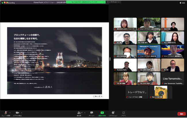 「今回、コンペの運営を担当させていただきました。学生の皆様が、日頃接点を持ちづらい貿易DXについて考え、社会で求められる”型”に囚われすぎない新鮮な目で自由に表現していただいたことで、トレードワルツ社に新しい風をお届けできたことを嬉しく思います。」