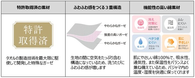 美容と睡眠の関係性を熟知している美容家や睡眠の専門家は、日々の睡眠を何よりも大切にします。そんな専門家たちが質の高い睡眠を得るために、こぞってこだわるアイテムは、なんとパジャマ!就寝中ずっと肌に触れ、睡眠の質を上げるパジャマは、知る人ぞ知る隠れた美容アイテムなのです。数あるパジャマ製品の中で、マシュマロガーゼパジャマは、パジャマ内の温度・湿度を快適に保ち、ベタつきやムレ感などを解消、また綿100%で抜群のやわらかさは肌の大敵である摩擦を軽減し、眠っている間に健康的な美しさを作り出してくれます。
