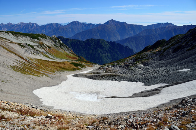 氷河によって形作られた内蔵助カールに現存する氷河