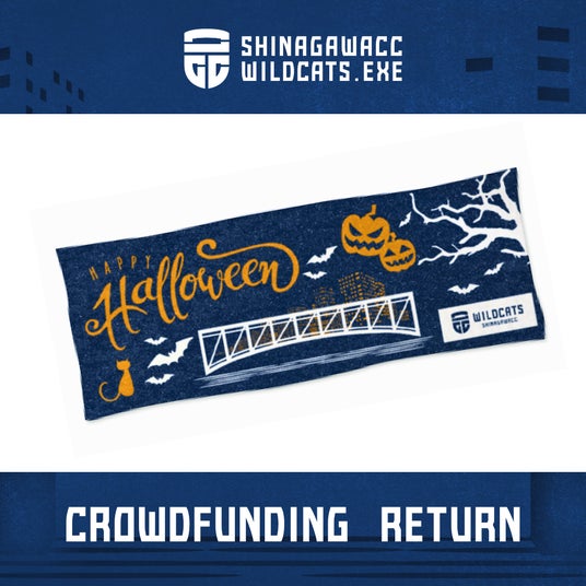リターンのひとつであるハロウィンオリジナルタオルは、品川ブルーにハロウィンらしい遊び心を加えて、オレンジを差し色としたデザインとなりました。