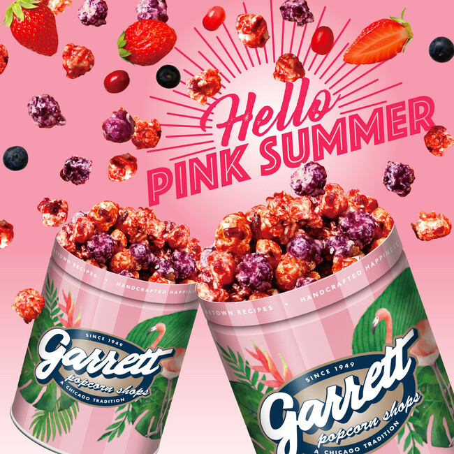 Garrett Japan合同会社(本社:東京都目黒区、代表社員:Lance Chody)が運営する、アメリカ・シカゴ生まれの手作りにこだわったグルメなポップコーン・ブランド『ギャレット ポップコーン ショップス(R)』は、ストロベリー、ブルーベリー、クランベリーの3種類のベリーを組み合わせた『トリプルベリー キャラメルクリスプ(TM)』を期間・数量限定で発売します。また、淡いピンクカラーにフラミンゴや夏らしいグリーンを描いた『ピンクフラミンゴ缶』も同時発売します。