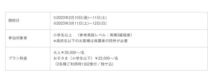 福島県天栄村にある宿泊施設兼国際研修センターのブリティッシュヒルズ(代表取締役:野澤肇 総面積約73,000坪 運営:神田外語グループ)は、「School of Magicプラン」の販売を開始いたします。School of Magicプランでは、お客様を魔法学校生としてお迎えし、イングリッシュスピーカーの講師とのレッスンやアクティビティを通して、一流の魔法使いを目指します。今年からプランがリニューアルされ、お子さまもご参加可能となり、魔法の生物を探し出す新しいレッスンなどがお楽しみいただけるようになりました。白銀に包まれた英国の魔法学校での時間は、日本にいることを忘れさせ、思わず写真を撮りたくなるような空間です。英語や英国文化に触れながら魔法学校生のような気分を味わえる特別なプラン。新型コロナウイルスや円安による影響で海外へ行きにくくても、ご家族やお友達と「パスポートのいらない英国」で特別な時間をお過ごしください。