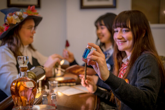 羽鳥高原の標高1,000mに位置し、中世英国を忠実に再現した街並みや施設と、英語に囲まれたブリティッシュヒルズ。英国連邦出身の講師による、西洋魔術に関するレッスンを受けながら一流の魔法使いを目指します。今回からお子さまも参加可能となり、ご家族で魔法の世界をお楽しみいただけます。