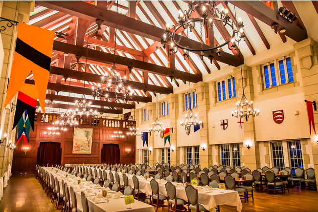 ディナーは英国の居酒屋を再現したフォルスタッフパブでご用意。朝食は、高い吹き抜け天井が特徴の重厚感のあるリフェクトリーで、魔法学校の食堂で食事をするような体験をご提供いたします。