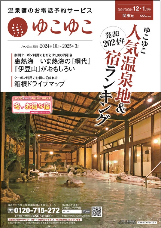温泉宿のお電話予約サービス「ゆこゆこ」やシニアマーケティング支援事業を提供する株式会社ゆこゆこ(本社:東京都中央区、代表取締役社長:茨木 智設)は、2023年4月1日~2024年3月31日の1年間に読者が実際に宿泊した温泉地を集計しました。2024年 10月17日発行の宿泊情報誌「ゆこゆこ」12月号で「人気温泉地ランキング」を発表します。本リリースでは、一部のランキング結果とともに、豊富な温泉知識をもつゆこゆこ目線でランクイン温泉地の顔ぶれをご紹介します。
