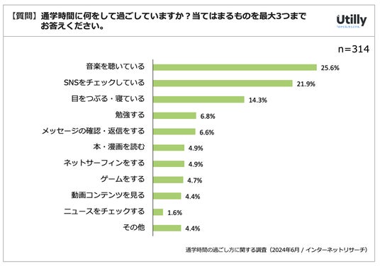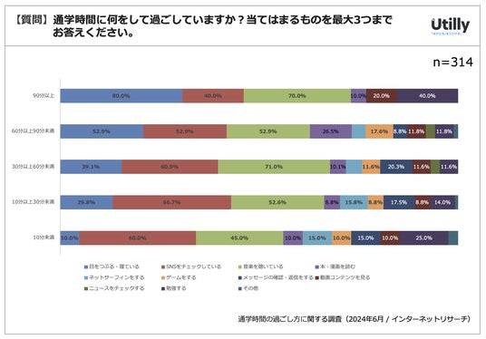 法人 SaaSの比較メディアUtilly(運営会社:株式会社GO TO MARKET、所在地:東京都 渋谷区)では、2024年6月に通学時間の過ごし方に関する調査を実施しました。