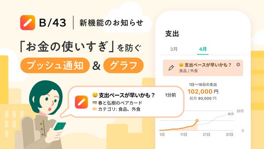 ※お金の使いすぎを防ぐ家計管理サポート機能の詳細:https://b43.jp/news/entry/feature-update-expenses-support