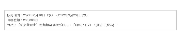 プロジェクトページ→https://www.makuake.com/project/rimfo/