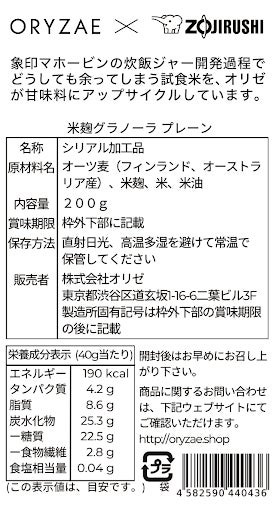 日本の伝統発酵技術を用いて社会課題解決を目指す株式会社オリゼ(本社:東京都目黒区、代表取締役:小泉泰英 以下、当社)と、象印マホービン株式会社(本社:大阪府、代表取締役 社長執行役員:市川 典男)は、持続可能な社会に向けたサーキュラエコノミー(循環型経済)の実現を目指し、象印マホービンが炊飯ジャーを開発する際に炊飯試験で炊いたごはんを原料にアップサイクルさせた「オリゼ甘味料(米麹発酵糖分)」を製造しました。2024年3月22日より、この「オリゼ甘味料(米麹発酵糖分)」を利用した砂糖不使用の米麹グラノーラ「ORYZAE GRANOLA」を数量限定で発売いたします。アップサイクルによって生まれた利益を農業振興へ還元するため、売上げの一部は然るべき手続きのもと日本の農業振興活動団体へ寄付を行います。