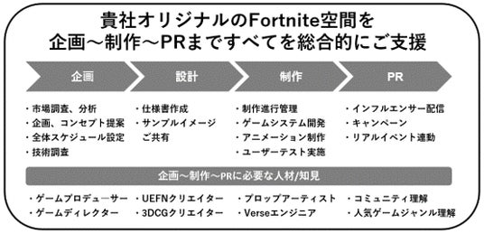 また、これまで連携しているクリエイター・制作スタジオと協業し、Fortniteを活用した企業/自治体のゲームメタバース空間制作サービスとマーケティング支援を開始いたします。